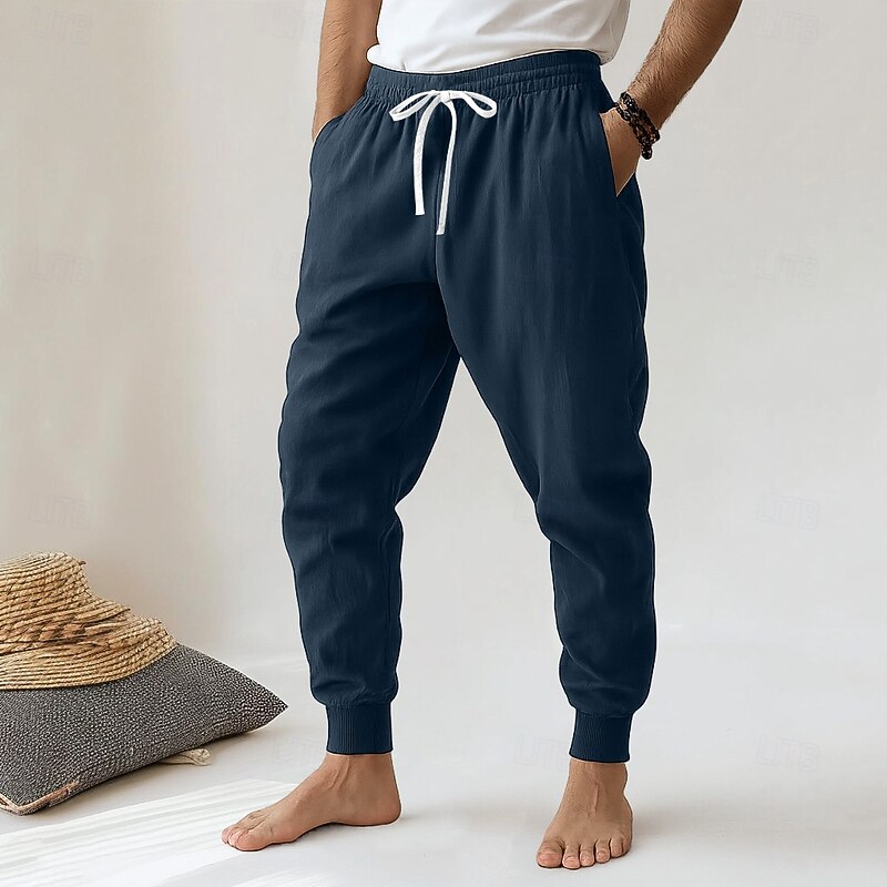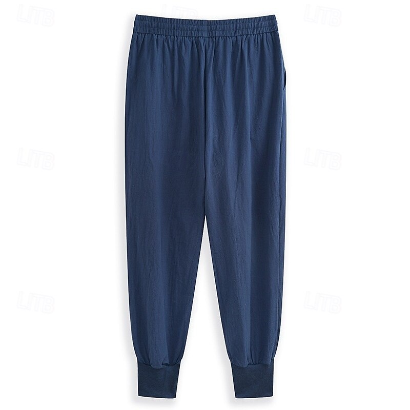 Why Choose Men's Linen Pants Trousers Summer Pants Harem Pants Drawstring Solid Color Knee Length Outdoor Vacation Home Vacation Ethnic Style Black Navy Blue Low Waist Micro-elastic?
