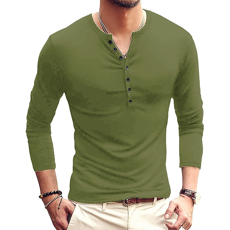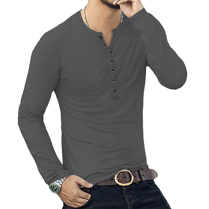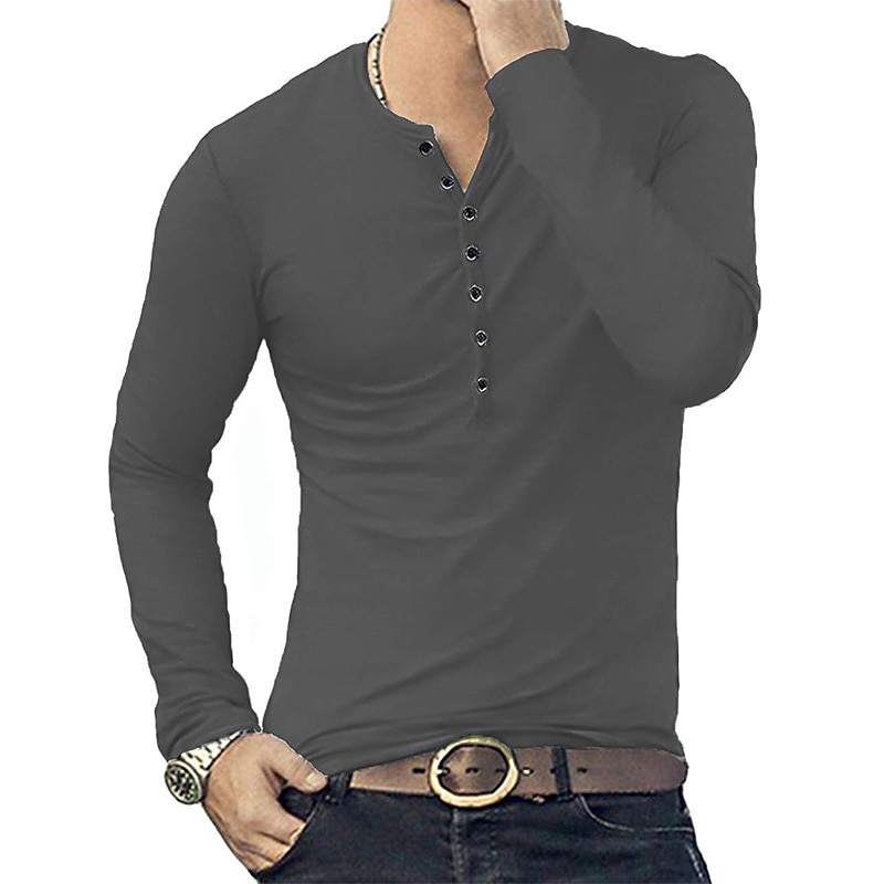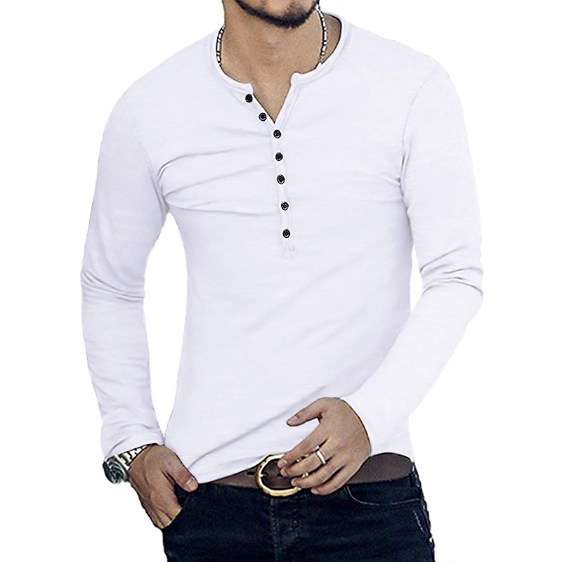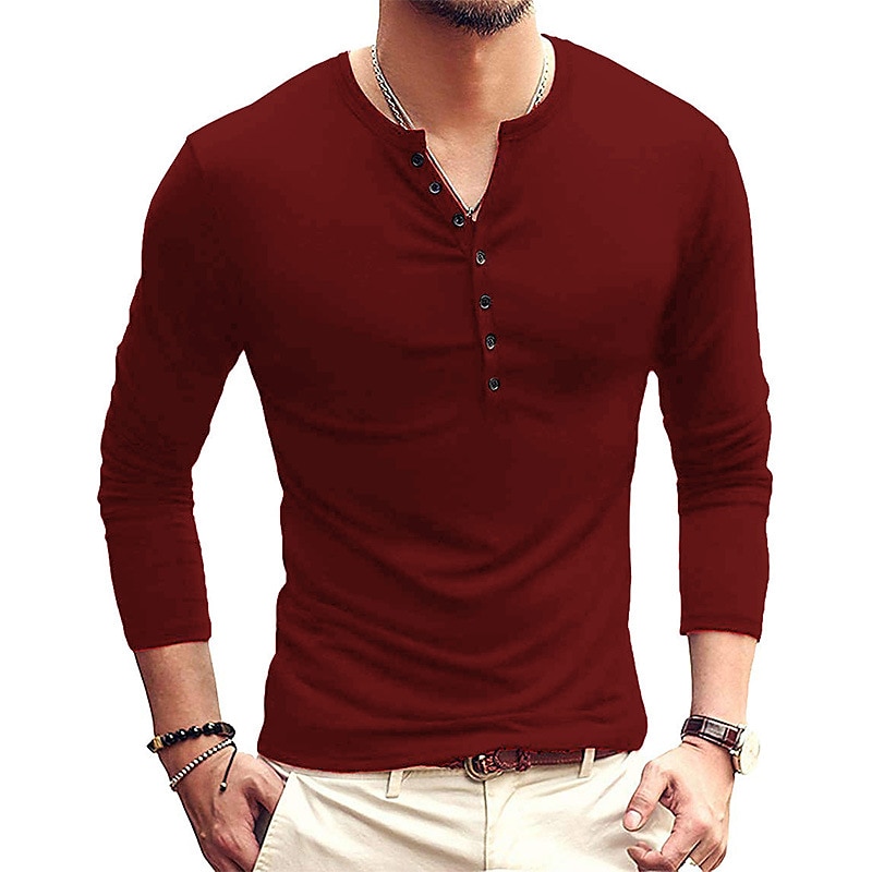 Highlights [Fabric:] Crafted from a high-quality cotton blend, this men's henley shirt offers a comfortable, breathable fit that's perfect for all-day wear. The combination of cotton and a linen-like fabric ensures durability and a lightweight feel, making it suitable for both spring and fall seasons. [Fit:] With a regular fit and micro-elasticity, this long-sleeve shirt is designed to enhance your shape without feeling restrictive. The slim fit offers a modern and flattering silhouette, while it also caters to a 'big and tall' style for added versatility. [Design Highlights:] Featuring a classic stand collar and a button-down placket, this shirt provides adjustable comfort and a touch of sophistication. The clean and neat cuffs contribute to its elegant design, suitable for both casual and semi-formal settings. [Occasions:] Ideal for vacations, holidays, and everyday casual outings, this versatile shirt pairs seamlessly with jeans or chinos. Whether dressing up for a semi-formal event or dressing down for a relaxed weekend, this shirt adapts to various occasions effortlessly. [Size Range:] Available in a range of sizes, from S to XXL, catering to a variety of body types. Choose from multiple color options, including blue, white, black, gray, and wine, to best match your personal style preferences. Perfect for everyday use. High quality materials and excellent craftsmanship ensure long-lasting durability.