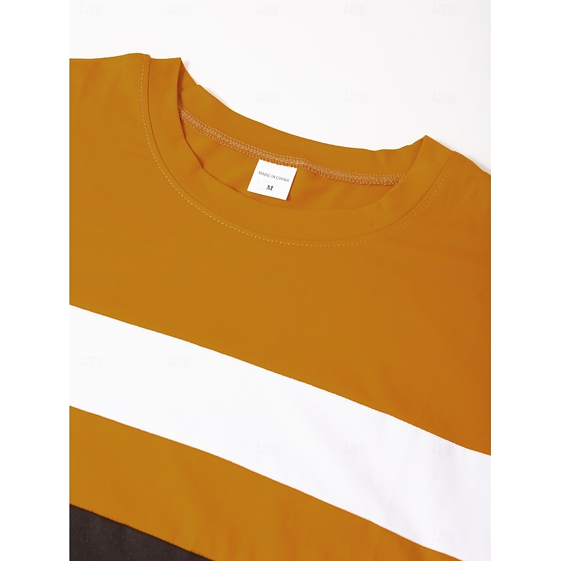 Highlights [Fabric] : Crafted from a durable and breathable milk fiber blend, this men's long-sleeve t-shirt ensures maximum comfort and longevity. The fabric’s micro-elasticity allows for easy movement, making it an ideal choice for everyday activities or leisurely outings. [Fit] : Featuring a regular fit, this shirt offers a balanced silhouette that’s neither too tight nor too loose, providing a flattering look suitable for various body types. Its classic crew neck design complements the overall relaxed style. [Design Highlights] : The bold color block design incorporates striking horizontal stripes across the chest in mustard yellow, white, and black, giving the shirt a contemporary and stylish edge. Its simple yet effective pattern makes it a versatile piece in any wardrobe. [Occasions] : Perfect for a variety of scenarios, this t-shirt is an excellent choice for vacation wear, street style, or casual daily outings. Pair it with jeans or chinos for a laid-back yet fashion-forward ensemble that transitions seamlessly from day to night. [Size Range] : Available in a comprehensive range of sizes from S to XXL, this shirt caters to a wide demographic, ensuring a comfortable fit for different body types. Choose the size that best suits your style and comfort preferences. Perfect for everyday use. High quality materials and excellent craftsmanship ensure long-lasting durability.