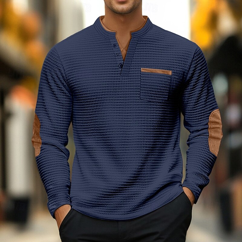 More information about Men's Waffle Tee Polo Shirts Long Sleeve V Neck Spring & Fall Solid Color Fashion Basic Fake two piece Street Casual Sports Black Gray Navy Blue Top Tee for Men