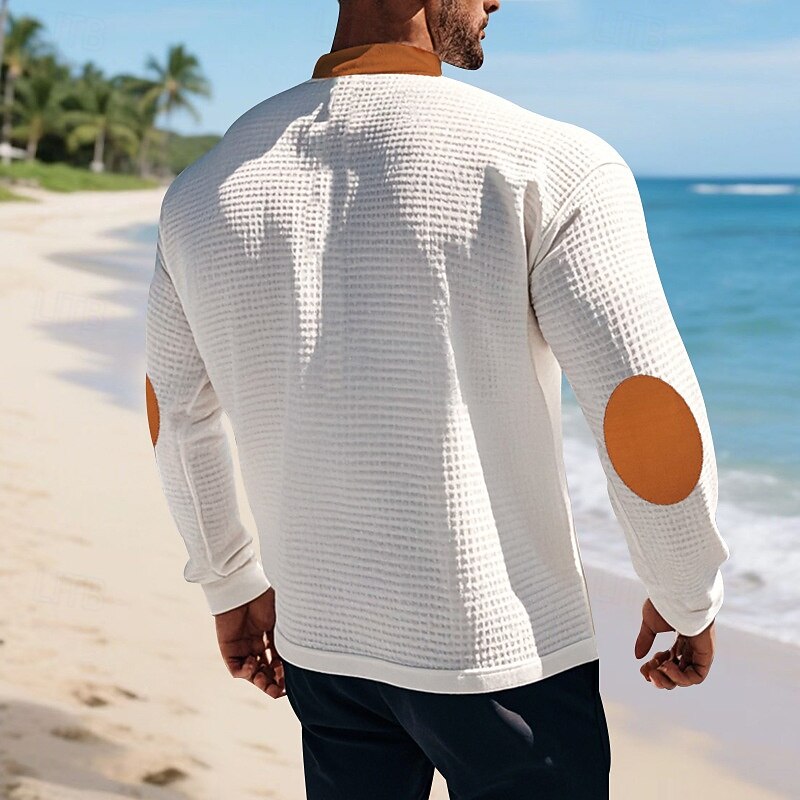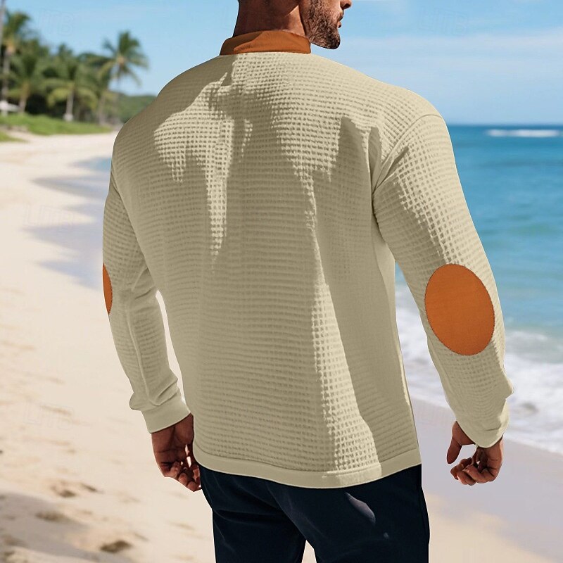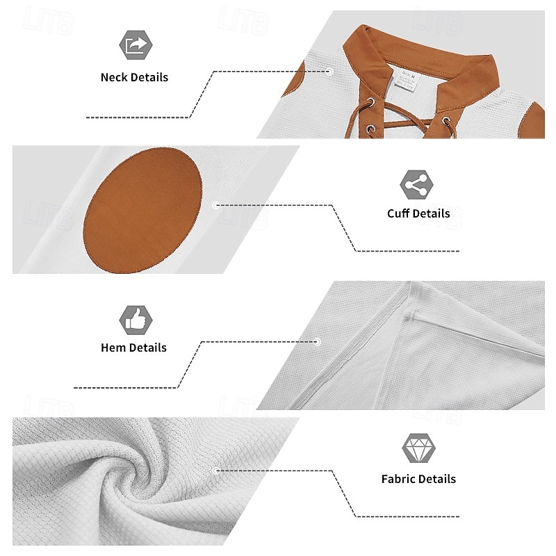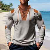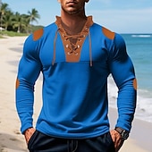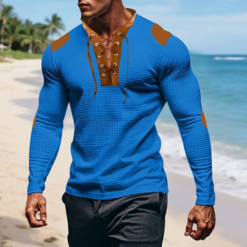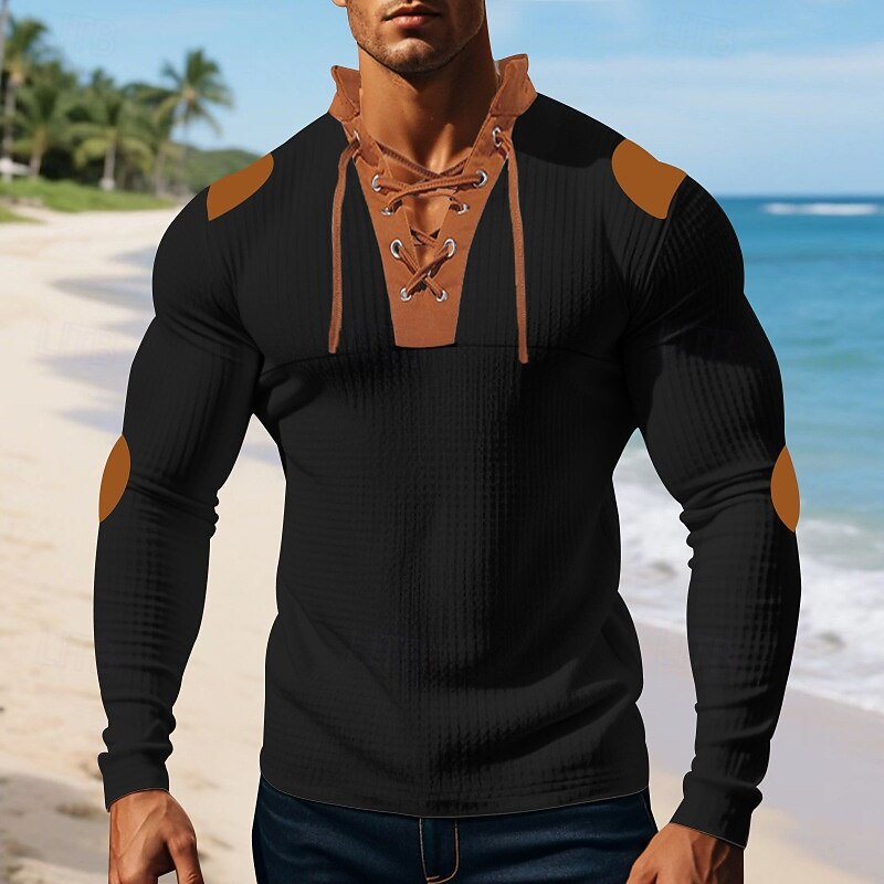 More information about Men's T Shirt Tee Waffle Knit Tee Tee Top Long Sleeve V Neck Spring Fall Color Block Fashion Designer Basic Lace up Vacation Street Going out Apricot Black White Top Tee for Men