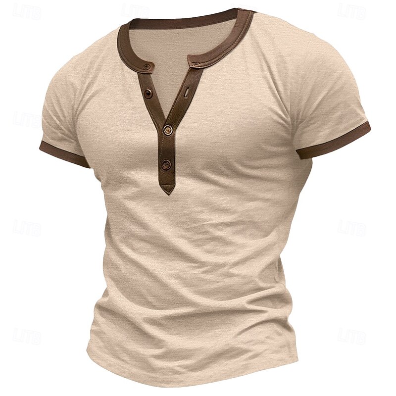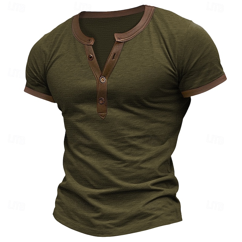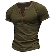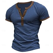 More information about Men's T shirt Tee Henley Shirt Tee Top Solid Color Henley Outdoor Casual Short Sleeve Patchwork Button Clothing Apparel Fashion Designer Comfortable