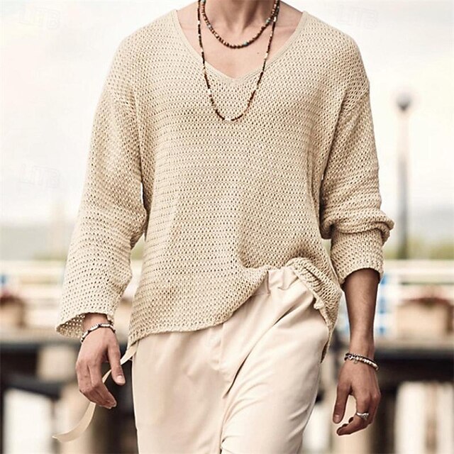 Highlights [Fabric] : Crafted from high-quality polyester, this men's sweater boasts a lightweight, breathable knit material that ensures comfort and ease throughout the day. The micro-elastic nature of the fabric allows for a flexible fit, making it perfect for various activities. [Fit] : Designed with a regular fit, this sweater features a classic V-neckline and long sleeves, offering a timeless and versatile silhouette. The neutral shades such as Black, Navy Blue, Khaki, and Grey enhance its adaptability with different styles, ideal for effortless layering in spring and fall. [Design Highlights] : The sweater's minimalistic plain pattern and subtle knitting details add a touch of sophistication, making it a stylish choice for fashion-conscious individuals. Its simple yet elegant design renders it suitable for both casual and designer fashion enthusiasts. [Occasions] : Perfect for vacations, street style, going out, or casual daily activities, this sweater seamlessly blends basic style with modern appeal. Whether you're dressing down for a relaxed day or adding a layer for a more polished look, this piece complements a range of settings. [Size Range] : Available in sizes S, M, L, XL, XXL, and 3XL, this sweater caters to a broad audience, ensuring a comfortable and accommodating fit for adults of varying body types. Perfect for everyday use. High quality materials and excellent craftsmanship ensure long-lasting durability.