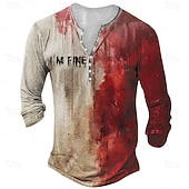 More information about Halloween Men's Blood Splatter Blood stains T Shirt Henley Shirt Long Sleeve T shirt 3D Print Henley Shirt Designer Retro Vintage Street Casual Red Khaki Summer Spring Fall Clothing Apparel S M L XL
