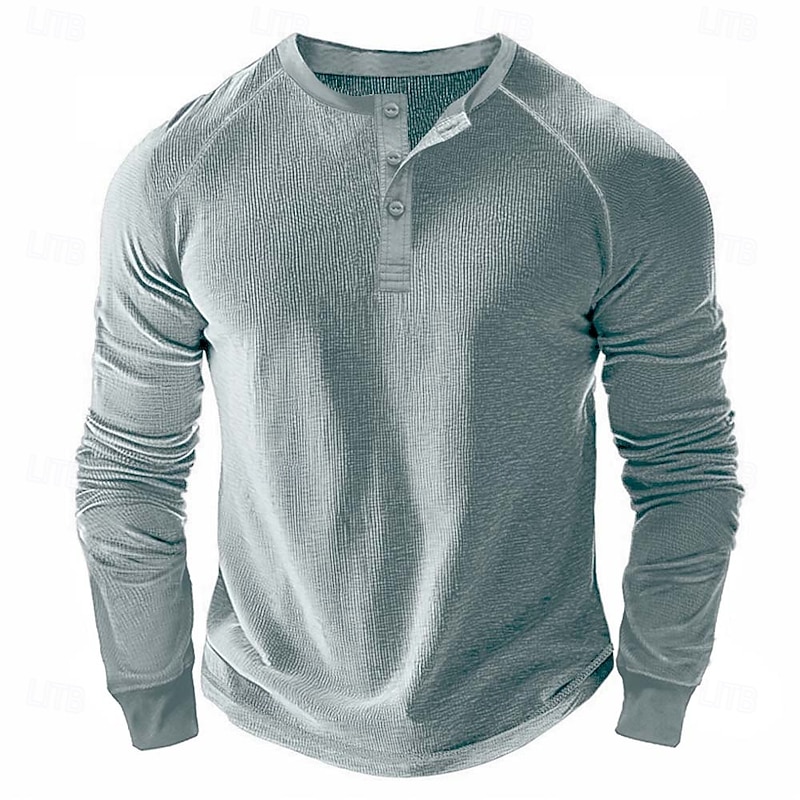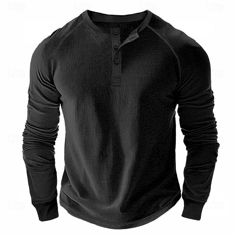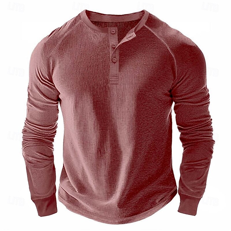 Why Choose Men's Waffle Henley Shirt Tee Long Sleeve Solid Color Plain Textured Fashion Designer Casual Raglan Sleeves Henley Outdoor Casual Daily Summer Fall Winter Black Light Blue Dark Red Henley T-Shirt?