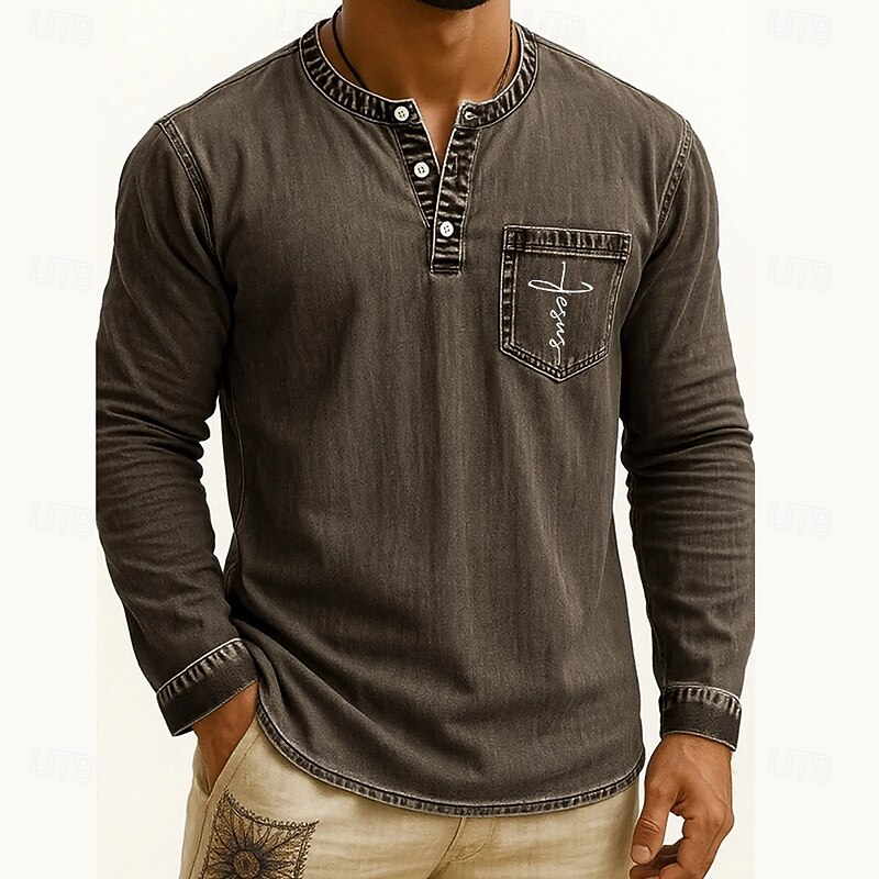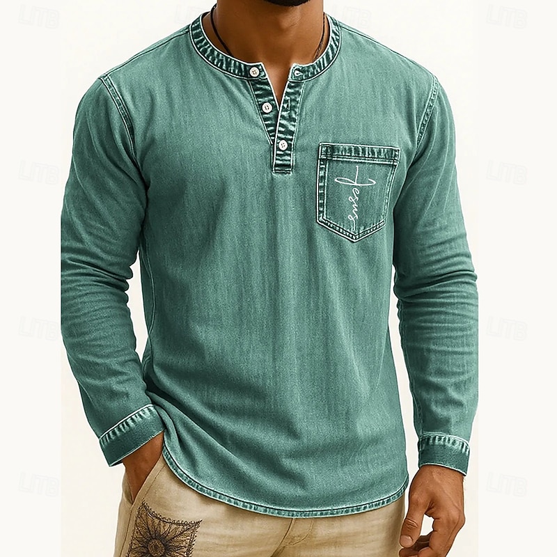 Highlights - Made from 100% cotton fabric - Long sleeve Henley shirt for men - Perfect for fall and winter seasons - Ideal for vacation occasions
