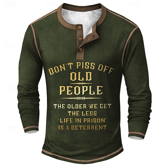 This Men's Vintage Funny Slang Henley Shirt Tee Long Sleeve Vintage Fashion Designer Outdoor Casual Daily Spring Spring & Fall Army Green Black Dark Purple Navy Blue Henley Collar Henley Henley T-Shirt combines elegant design with practical functionality. Every detail has been carefully considered to ensure you get the best possible experience. The high quality construction means this product will serve you well for years to come.