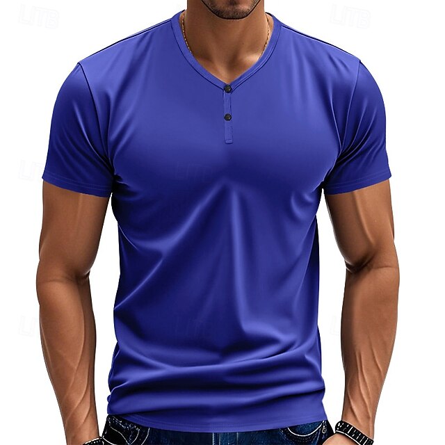 More information about Men's T Shirt Henley Shirt Tee Short Sleeve Shirt Short Sleeve V Neck Summer Plain Fashion Designer Basic Plain Vacation Street Going out claret Black Royal Blue Top Tee for Men