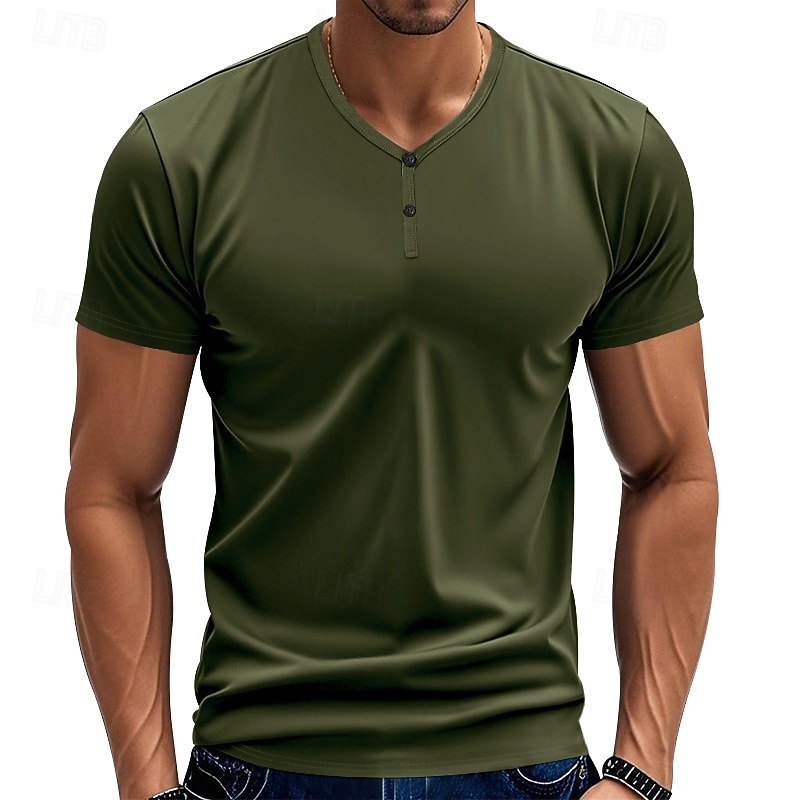 Highlights - Perfect for hot summer days - Made of high-quality polyester - Short sleeves for added comfort - Designed for men - Classic and versatile style - Henley shirt design - Ideal for vacations - Stylish V-neck neckline