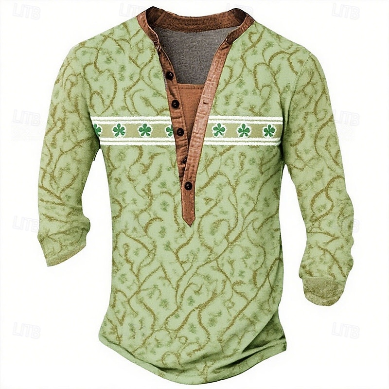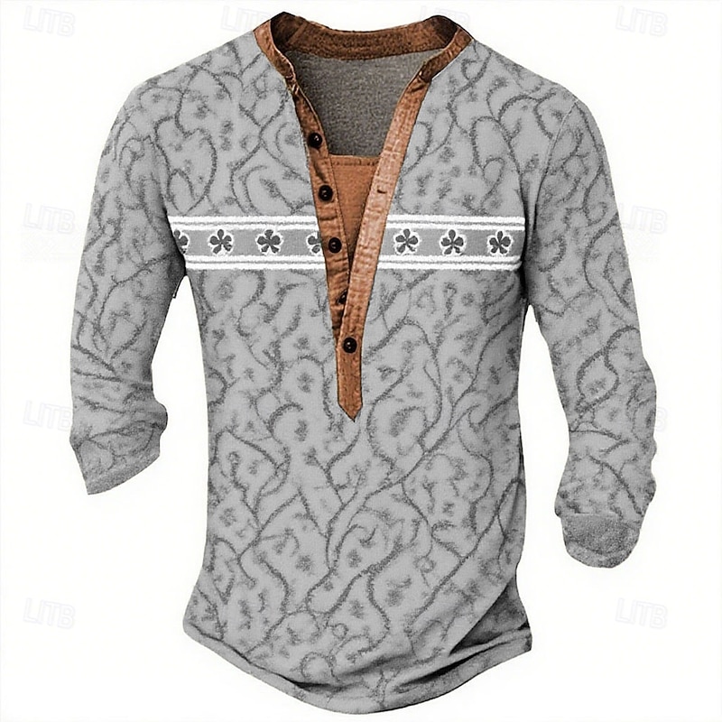 This Men's Print Clover T Shirt Henley Shirt Long Sleeve Designer Retro Vintage Bohemian Street Casual Daily Summer Spring Fall Blue Brown Green khaki Grey Henley Henley T-Shirt combines elegant design with practical functionality. Every detail has been carefully considered to ensure you get the best possible experience. The high quality construction means this product will serve you well for years to come.