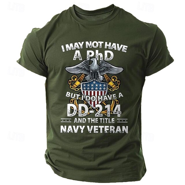 HOT ! Men's Navy Veteran Graphic T-Shirt - DD-214 & PhD Military Service Pride Short Sleeve Tee