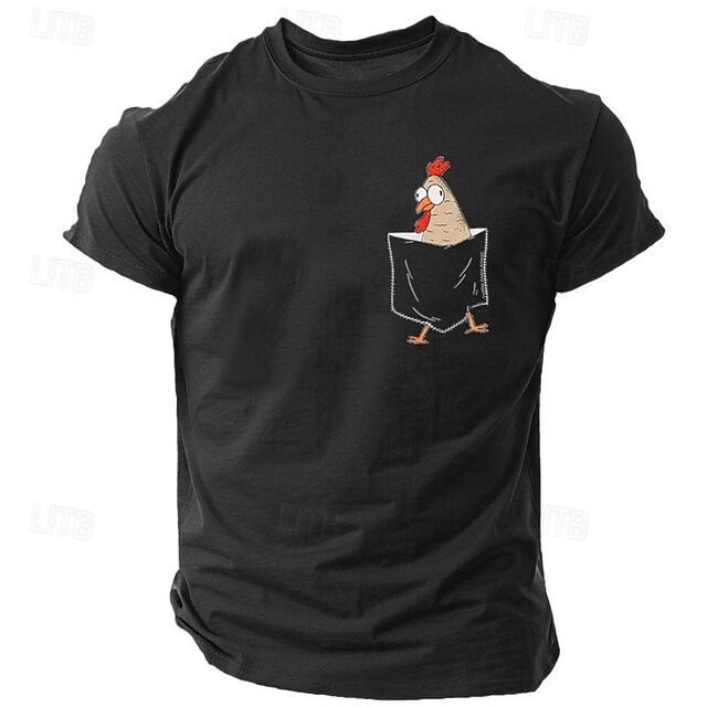 Men's Funny Chicken Pocket Graphic Tee Shirt Short Sleeve Humorous Animal Design Top 8