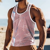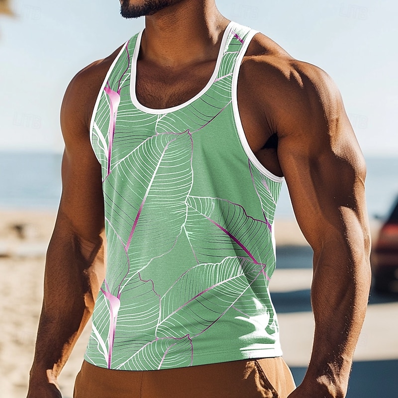 Why Choose Men's Tank Top Vest Sleeveless Shirt Sleeveless Crew Neck Summer Plants Tropical Palm Leaf Fashion Classic Comfortable Print Casual Holiday Beach Light Green Pink Blue Top Tee for Men?