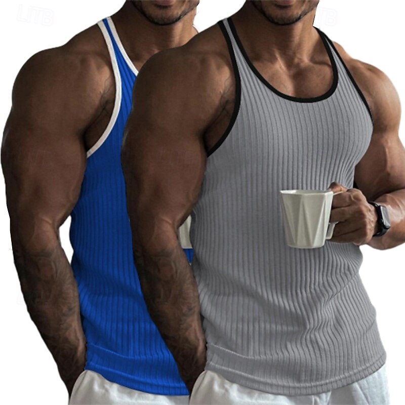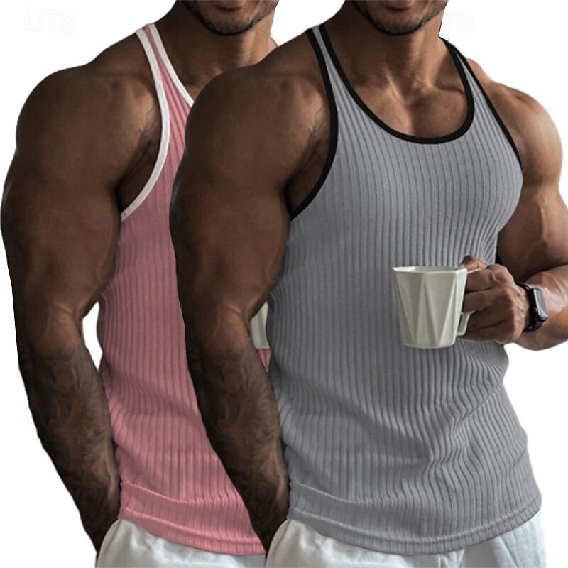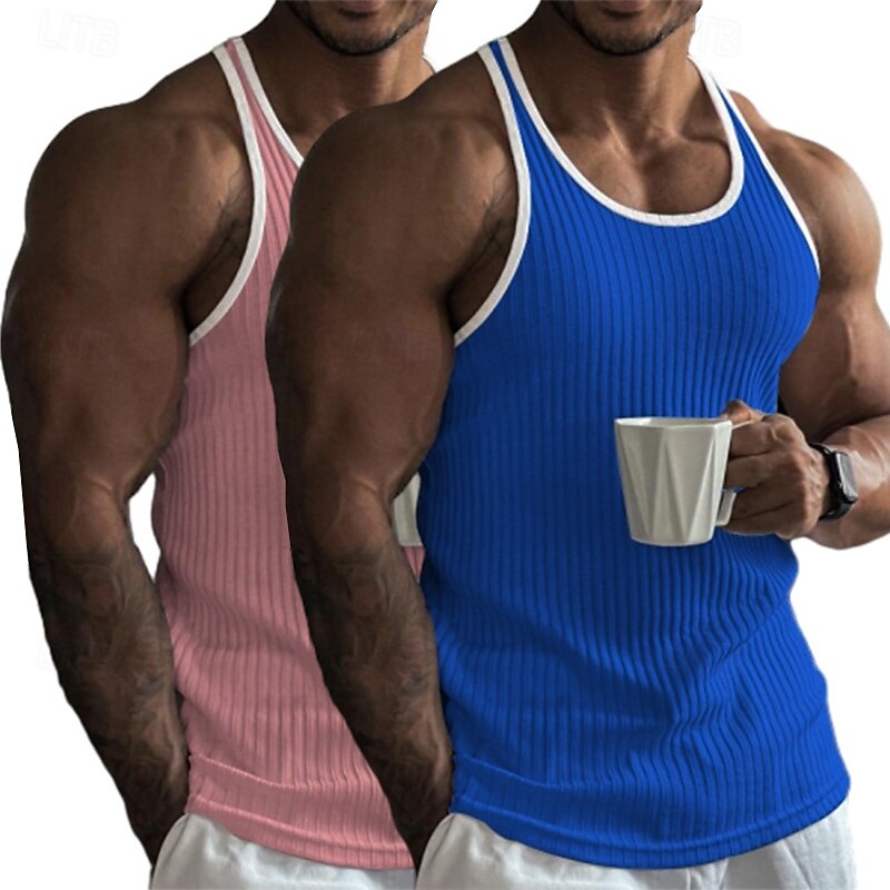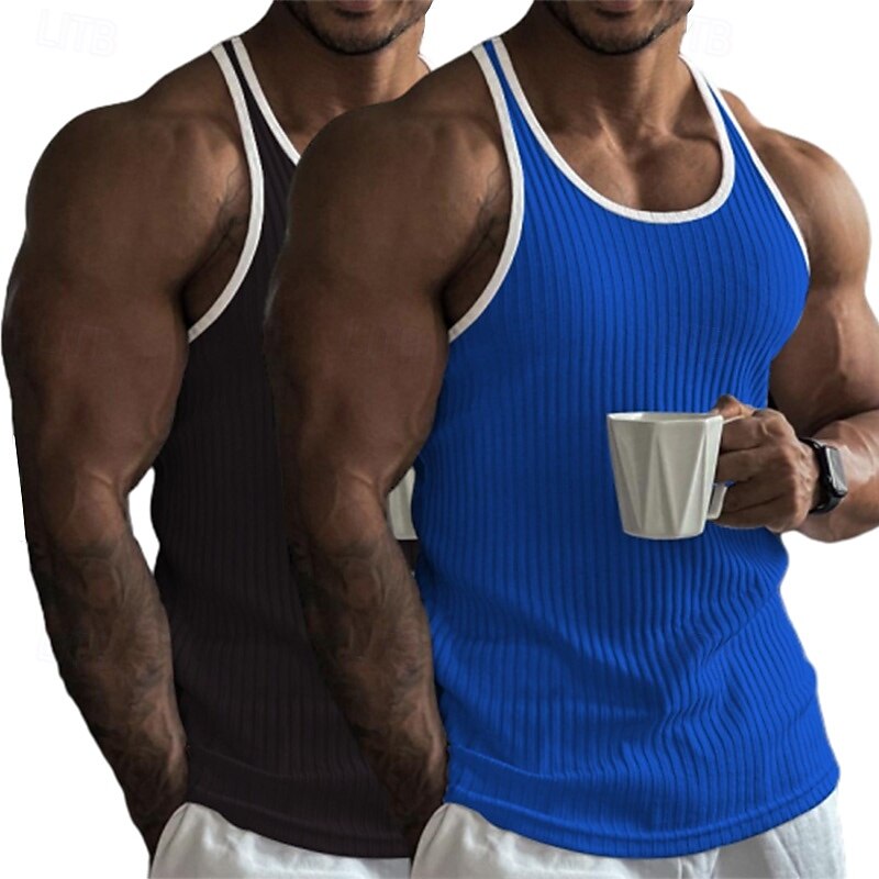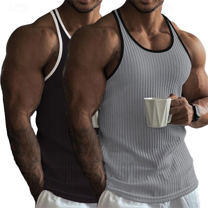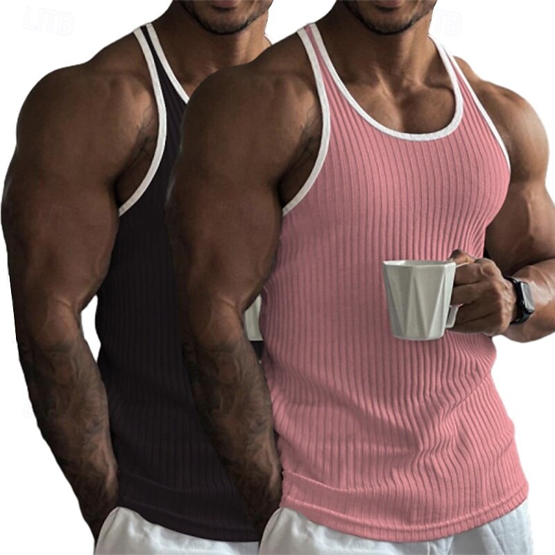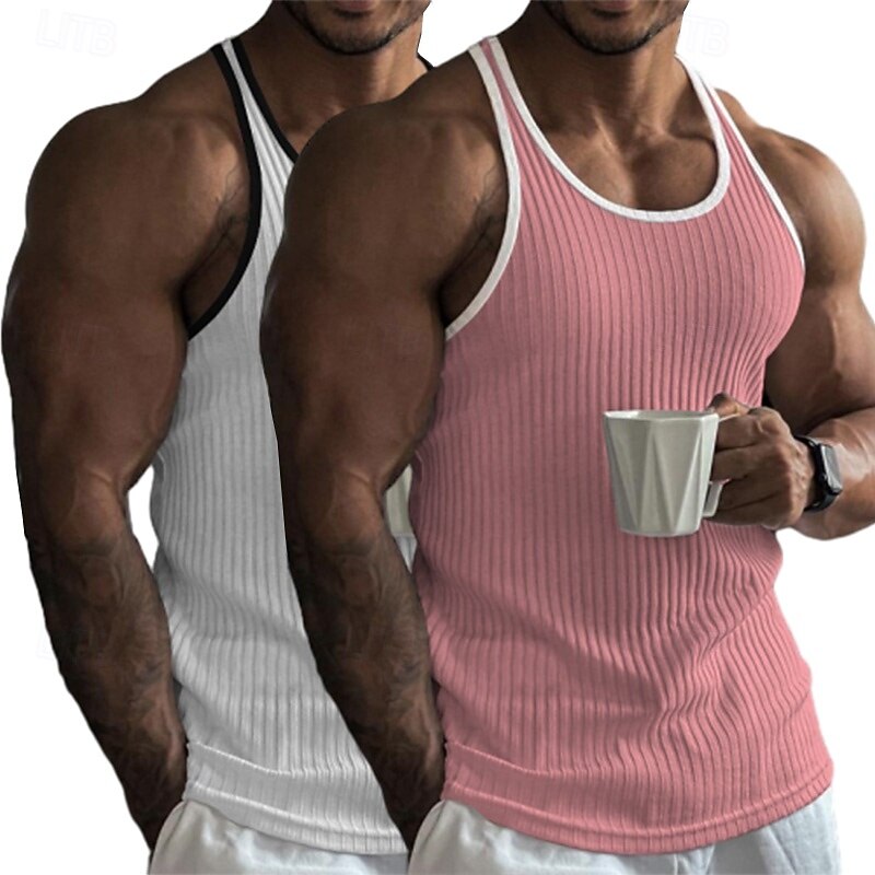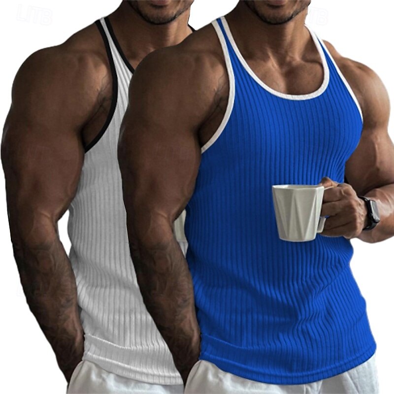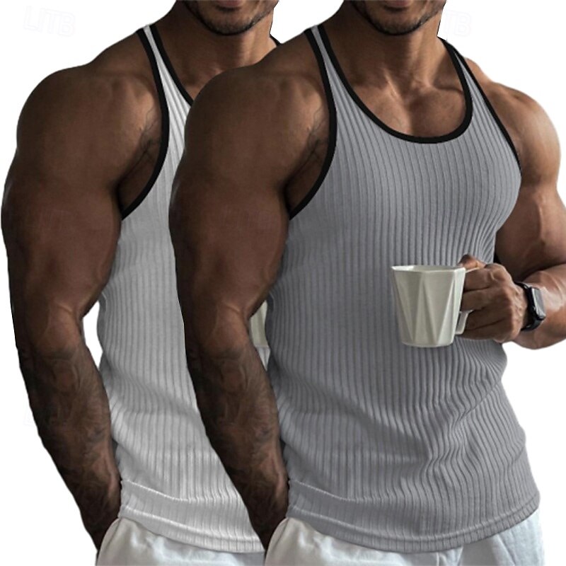 Why Choose 2 Piece Men's Tank Top Wife beater Shirt Sleeveless Crew Neck Summer Color Block Pit Strip Fashion Designer Sporty Outdoor Casual Going out White Black Top Tee for Men?