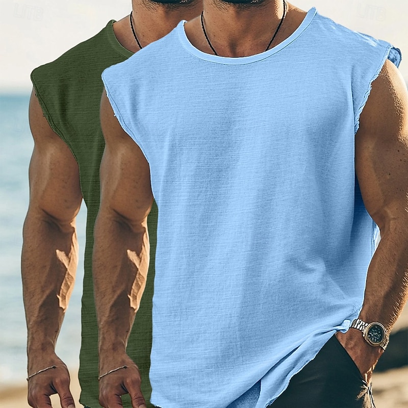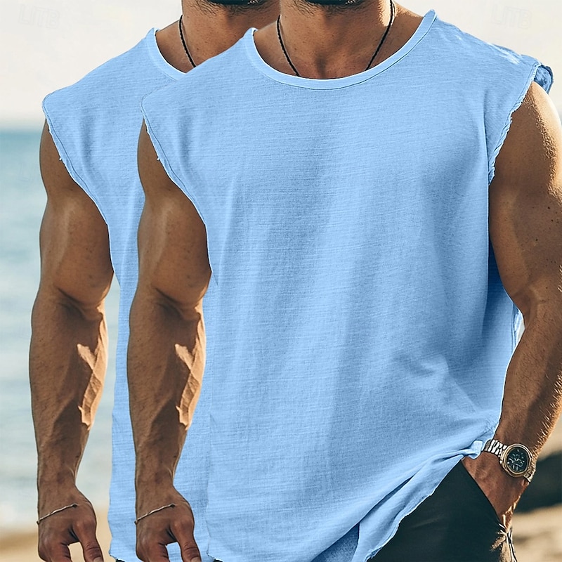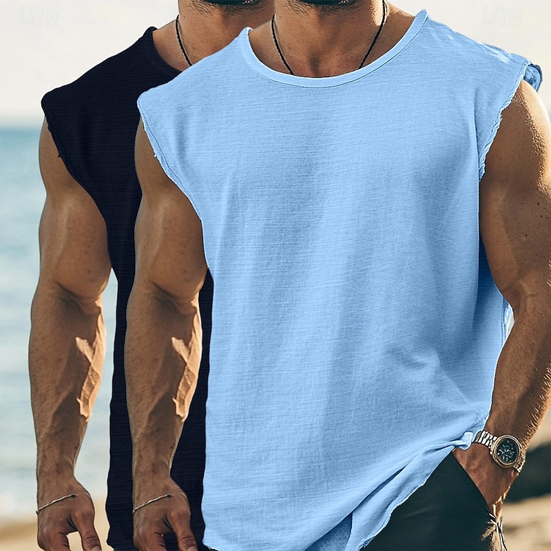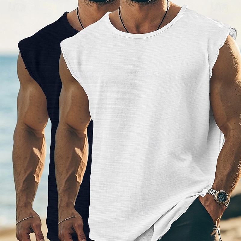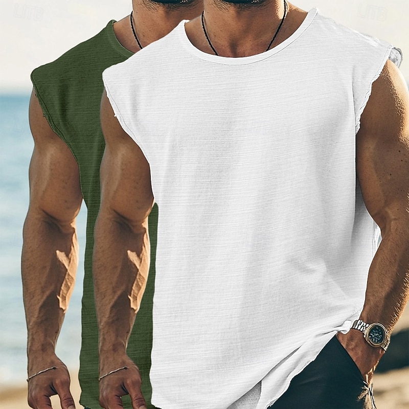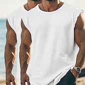 More information about Men's T Shirt Sleeveless Short Sleeve Cap Sleeve Crew Neck Round Neck Summer Plain Textured Fashion Classic Casual 2 Piece Plain Street Casual Sports Green & White White+White White+Blue Top Tee for
