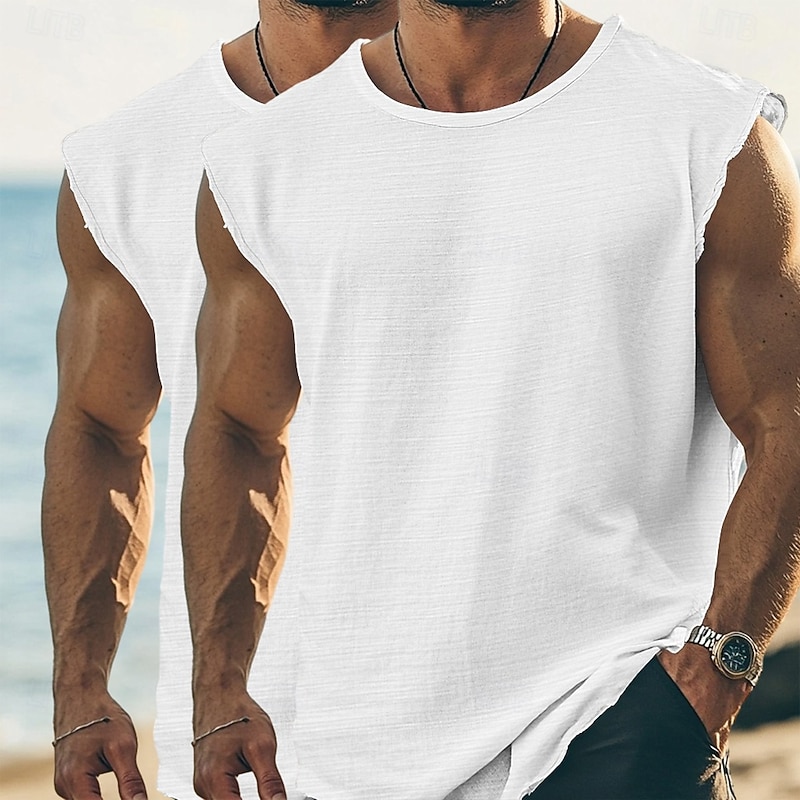 Men's T Shirt Sleeveless Short Sleeve Cap Sleeve Crew Neck Round Neck Summer Plain Textured Fashion Classic Casual 2 Piece Plain Street Casual Sports Green & White White+White White+Blue Top Tee for 2