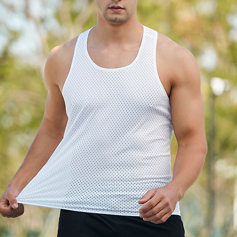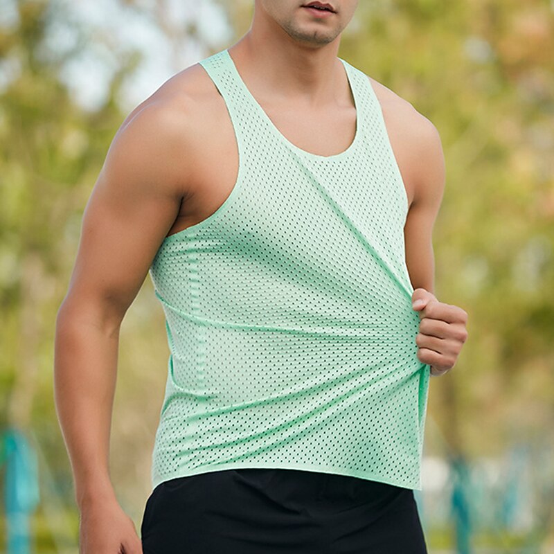 Highlights [Fabric] : Engineered from a lightweight, breathable polyester mesh, this men's tank top offers superior ventilation and moisture-wicking abilities to keep you dry and comfortable during any activity. The fabric’s quick-dry nature makes it perfect for active wear. [Fit] : Designed in a regular fit, this tank top offers a relaxed and comfortable feel while allowing for ease of movement. Its sleeveless design makes it ideal for sports, providing maximum freedom for your arms during workouts or casual everyday activities. [Design Highlights] : This tank top features a classic crew neck and a plain pattern for a timeless, versatile look. It comes in a vibrant range of colors, including blue, green, white, black, orange, and red, with a subtle perforated pattern that adds a touch of style to its overall design. [Occasions] : Perfect for a variety of settings, whether you’re heading to the gym, enjoying outdoor sports, going on vacation, or simply having a casual day out. This tank top combines functionality with style, making it a staple in any active wardrobe. [Size] : Available in sizes ranging from S to 2XL, this men’s tank top is designed to accommodate different body types, ensuring a comfortable and personalized fit for all wearers.