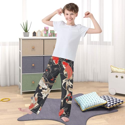 HOT ! ZZXXB Carp and Flowers Boys Long Pants Soft Trousers Elastic Waist Kids Lounge Bottoms with Pockets S-XL