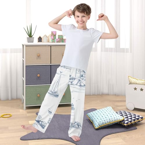 ZZXXB Sailboat and Lighthouse Boys Long Pants Soft Trousers Elastic Waist Kids Lounge Bottoms with Pockets S-XL
