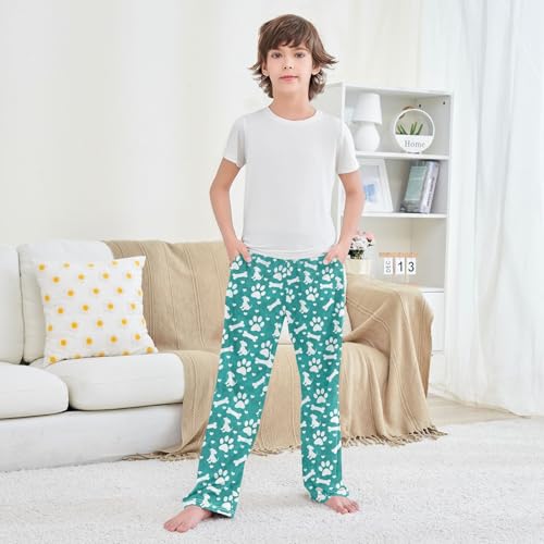 Puppy Dog Paw Print Bone Boys Long Pants Soft Trousers Elastic Waist Kids Lounge Bottoms with Pockets S-XL