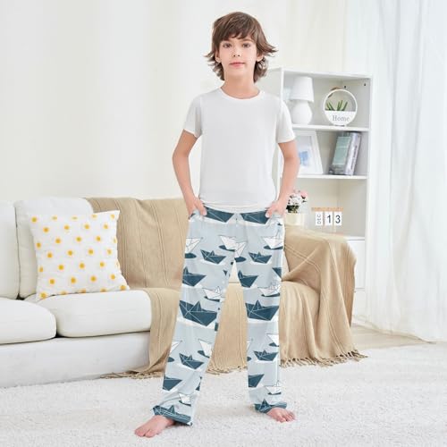 More information about ZZKKO Paper Boats Navy Blue Boys Pants for Kids Jogger Pants with Pockets S-XL