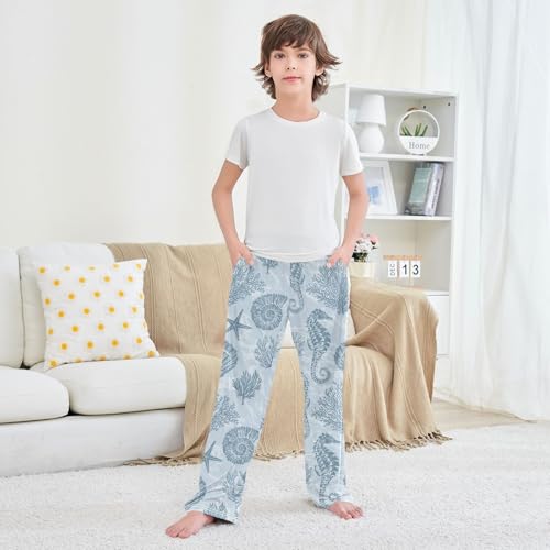 Boys' Pants Marine Stars Seahorse Coral Blue Long Bottoms Jogger Pants Elastic Waist Trousers with Pockets S-XL 1