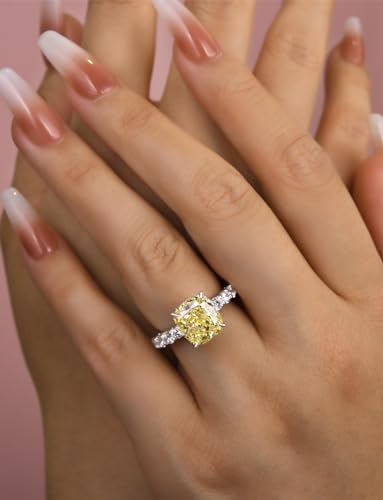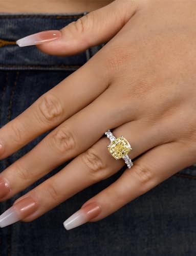 Simulated Canary Yellow Diamond Engagement Ring for Women,4.5CT CZ Gemstone,S925 Sterling Silver Promise Ring for Wedding,Travel,Daily 6