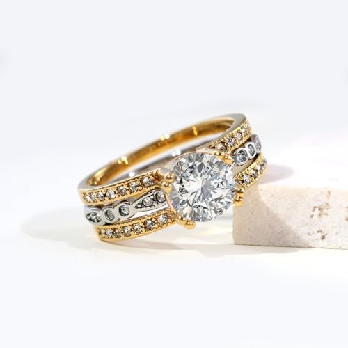 • FIT ANY OCCASION:Add style to a basic look with these couple ring.The classic yellow gold bridal set are finely crafted of gleaming aaa rhombus cut cz and are enhanced with a high polish finish.Womens ring set have 1ct main stone with prong setting to make it stronger and not easy to fall.Perfect for everyday wear for a statement-making look no matter the occasion.Make a dazzling addition to your jewelry collection!