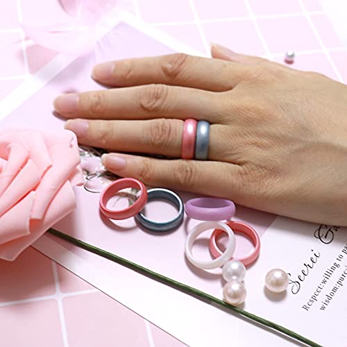 Zollen 10 Packs Silicone Rings for Women, 5.5 MM Metallic Rubber Wedding Bands Stackable Ring 7