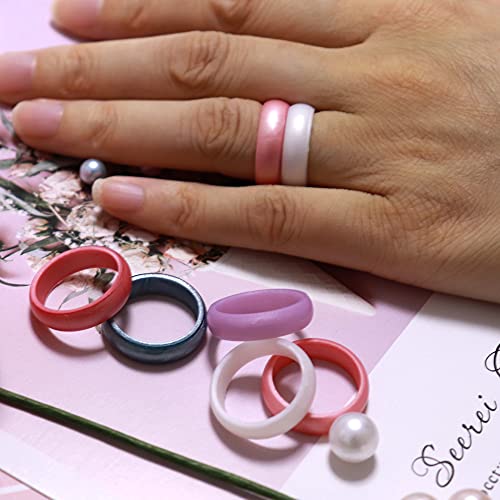Zollen 10 Packs Silicone Rings for Women, 5.5 MM Metallic Rubber Wedding Bands Stackable Ring 6
