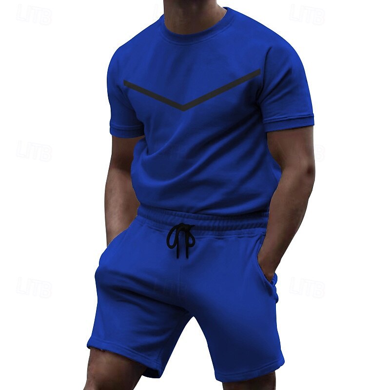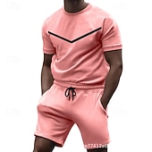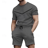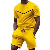 More information about Men's Workout Set Tracksuit T shirt & Shorts Set Crew Neck Outdoor Daily Sports Pocket Drawstring 2 Piece Color Block Black White Yellow Polyester Activewear Classic Casual Summer