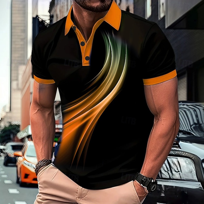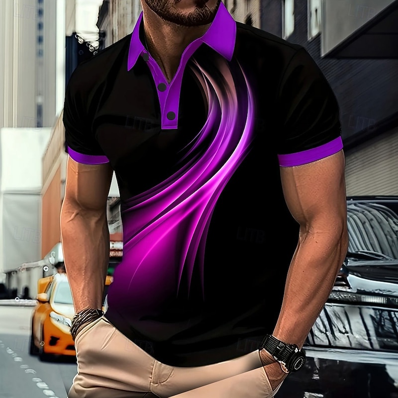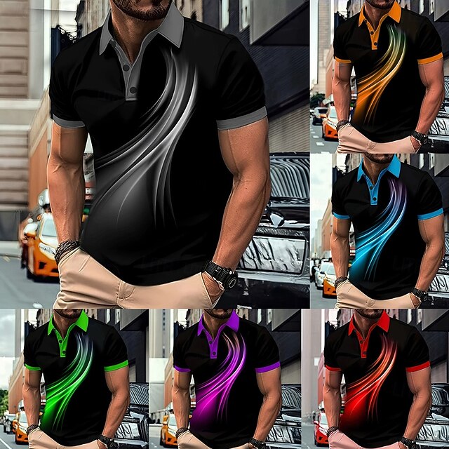 More information about Men's Geometic Line Polo Short Sleeve Polo Shirts Collared Shirts Business Casual Outdoor Athleisure Daily Wear 3D Print Summer Red Blue Purple