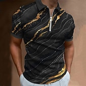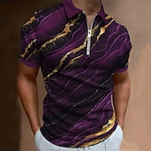 HOT ! Men's Graphic Zip Polo Shirts Golf Shirt Short Sleeve Polo Shirts Collared Shirts Casual Vacation Wear Rave Wear Party Outfits 3D Print Quarter Zip Polo Dark Green Purple Green