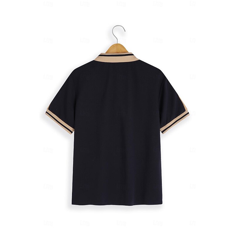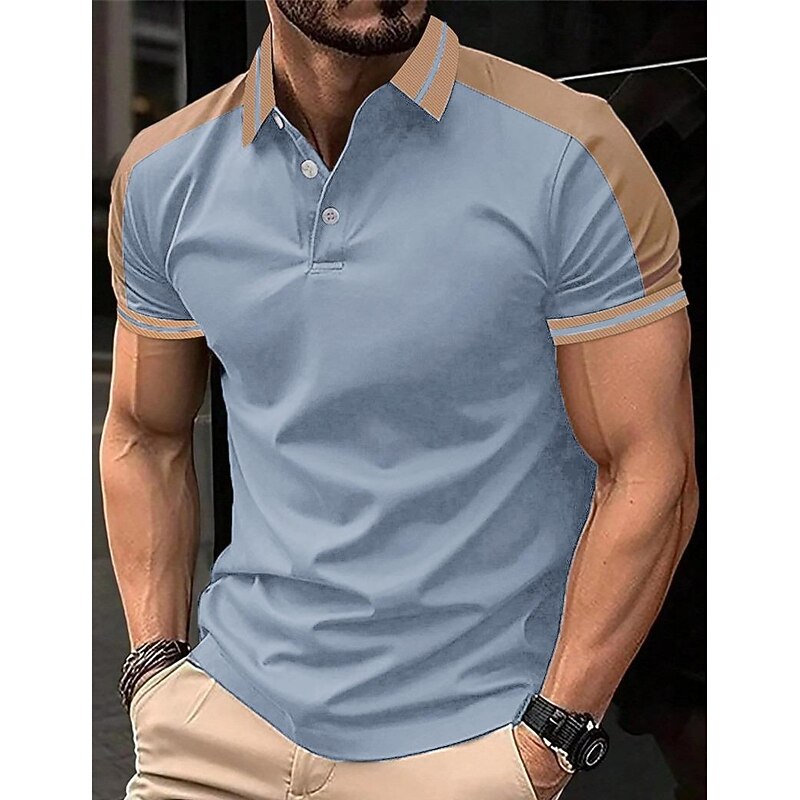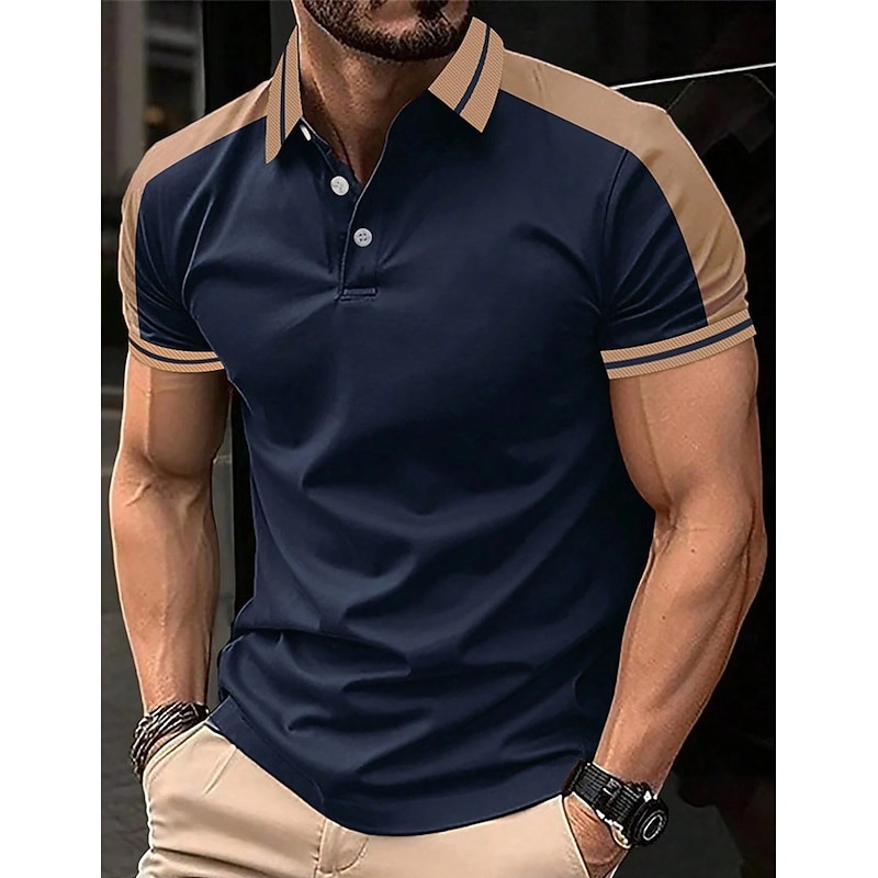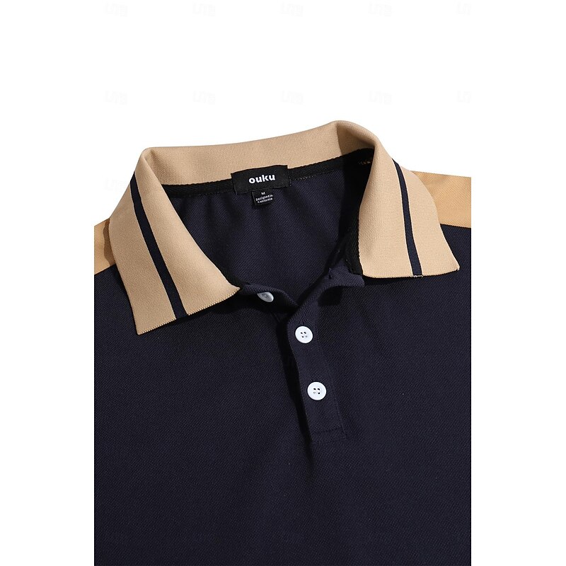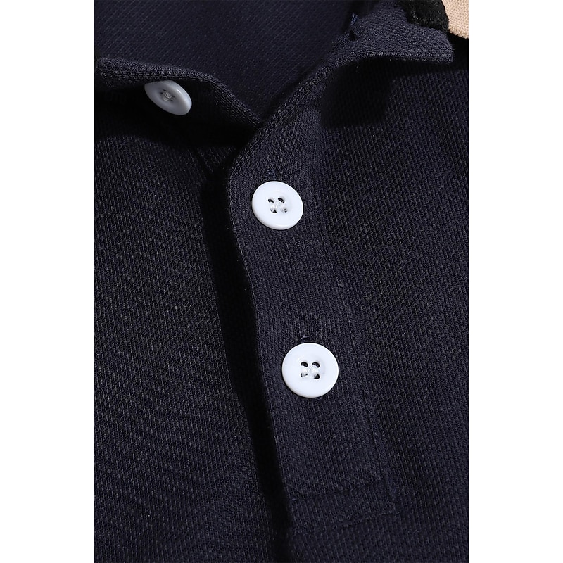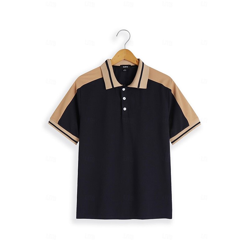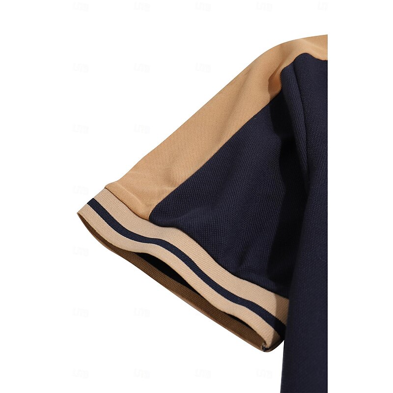 Highlights [Fabric] : Crafted from high-quality polyester, this men's polo shirt offers a micro-elastic fit that ensures maximum comfort and breathability. The material is easy to care for, being both washable and suitable for wet or dry cleaning. [Fit Type] : Designed in a regular fit, this polo shirt provides a contemporary silhouette that maintains comfort throughout the day. The ribbed cuffs on the short sleeves add to the sleek fit, making it ideal for both casual and semi-formal occasions. [Design Highlights] : Featuring a classic lapel neckline with a three-button placket, this polo shirt showcases a sophisticated style. The color block pattern with patchwork and embroidered details enhances its fashionable appeal, while the contrasting beige accents add a unique touch to the overall design. [Occasions] : Perfect for holidays and casual outings, this polo shirt suits a variety of settings. Whether you're enjoying a day at the golf course or attending a summer gathering, this piece offers both style and versatility. [Size Range] : Available in a wide range of sizes, from S to 3XL, this polo shirt is designed to fit different body types comfortably. Choose from a selection of sophisticated colors, including Green, Black, Navy Blue, Wine, Light Blue, and Grey. Perfect for everyday use. High quality materials and excellent craftsmanship ensure long-lasting durability.