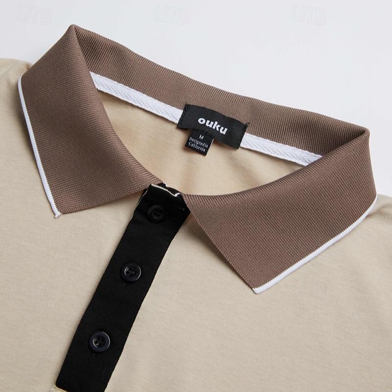 Why Choose Men's Cotton Polo Shirt Golf Shirt Casual Holiday Lapel Short Sleeve Fashion Basic Color Block Patchwork Summer Regular Fit Navy-blue milk white khaki Cotton Polo Shirt?