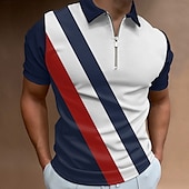 More information about Men's Striped Zip Polo Shirts Golf Shirt Short Sleeve Polo Shirts Collared Shirts Casual Vacation Wear Formal Wear Festival Wear 3D Print Quarter Zip Polo Summer Spring Blue