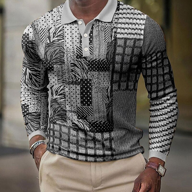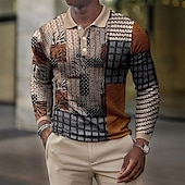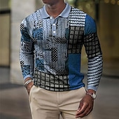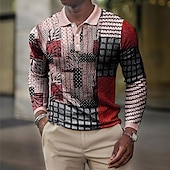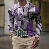 More information about Men's Plaid Waffle Polo Shirts Golf Shirt Long Sleeve Polo Shirts Collared Shirts Vintage Casual Vacation Wear Formal Wear Festival Wear 3D Print Buttons Red Blue Purple