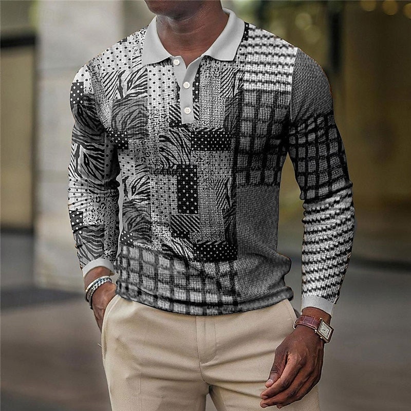 Highlights 1. Long Sleeve: This shirt comes with long sleeves to provide maximum coverage and insulation for cold weather. 2. Designed for Men: Our product is specifically designed to cater to men's fashion needs and preferences. 3. Graphic Pattern: The graphic pattern on this shirt will make you stand out from the crowd and give you an individualistic edge. 4. Turndown Neckline: The turndown neckline adds a touch of sophistication and elegance to your overall look, making you look classier and more stylish.