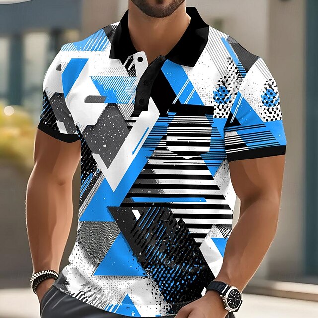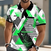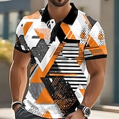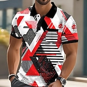 Men's Geometric Polo Short Sleeve Polo Shirts Collared Shirts Casual Outdoor Athleisure Daily Wear Pocket 3D Print Buttons Summer Red Blue Orange 7