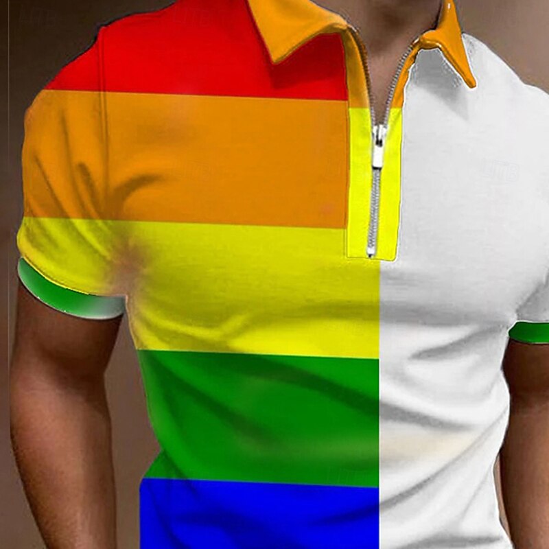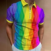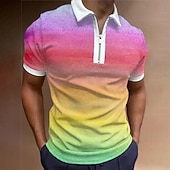 HOT ! Men's Rainbow Hawaiian Polo Shirts Golf Shirt Short Sleeve Polo Shirts Collared Shirts Casual Beach Wear Vacation Wear Tropical Wear Party Outfits 3D Print Quarter Zip Polo Pink Blue Rainbow