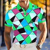 Why Choose Men's Polo Vacation Street Turndown Short Sleeve Vacation Geometric Color Block Buttons Summer Spring Regular Fit Brown Yellow Green Purple Polo?