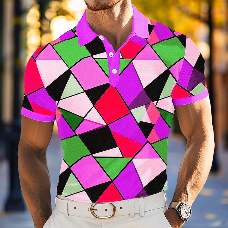This Men's Polo Vacation Street Turndown Short Sleeve Vacation Geometric Color Block Buttons Summer Spring Regular Fit Brown Yellow Green Purple Polo combines elegant design with practical functionality. Every detail has been carefully considered to ensure you get the best possible experience. The high quality construction means this product will serve you well for years to come.