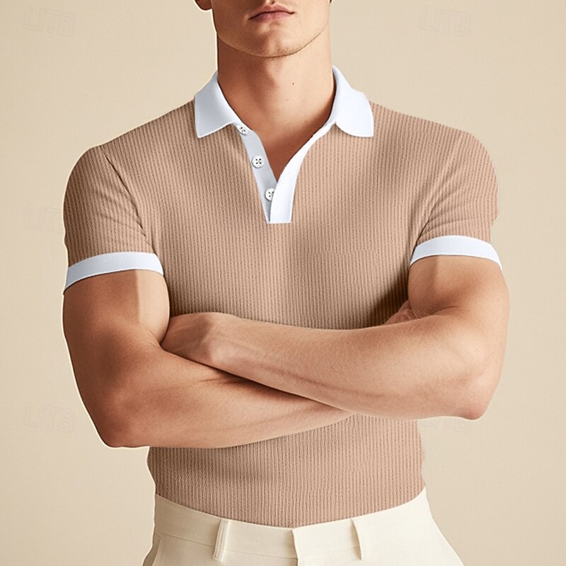 Why Choose Men's Golf Shirt Knit Polo Business Casual Classic Short Sleeve Fashion Solid Color Buttons Knitted Summer Spring Regular Fit White Wine khaki Light Blue Gray Golf Shirt?