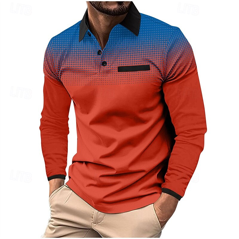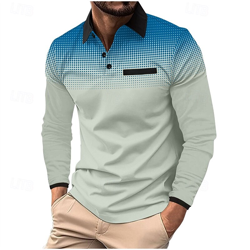 More information about Men's Golf Shirt Golf Polo Work Casual Lapel Long Sleeve Basic Modern Polka Dot Color Block Patchwork Button Spring & Fall Regular Fit Iron Gray Wine White Light Green Pink Red Golf Shirt