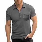Highlights [Fabric] This men's golf shirt is crafted from a high-quality polyester blend, ensuring breathability and comfort throughout the summer. Its micro-elastic properties provide a slight stretch, enhancing ease of movement whether you're on the golf course or out and about. [Fit] Designed for a regular fit, this polo maintains a balance of comfort and style, making it suitable for a variety of body types. Its silhouette offers a modern look without being too restrictive, ideal for both casual and semi-formal settings. [Design Highlights] The polo shirt features a stylish quarter zip neckline with a lapel, adding a contemporary flair to the classic polo aesthetic. A functional zippered chest pocket introduces a practical element, perfect for keeping small essentials handy. Available in versatile colors like Black, Military Green, Navy Blue, and Gray, it easily complements various outfits. [Occasions] Perfect for daily wear, sports activities, outdoor adventures, or casual outings, this shirt is a versatile addition to your wardrobe. It pairs effortlessly with jeans or chinos for a polished yet laid-back appearance, suitable for a day on the golf course or a night out with friends. [Size Range] Available in sizes S, M, L, XL, 2XL, and 3XL, this golf shirt caters to a wide range of body shapes, ensuring a comfortable fit for everyone. Perfect for everyday use. High quality materials and excellent craftsmanship ensure long-lasting durability.