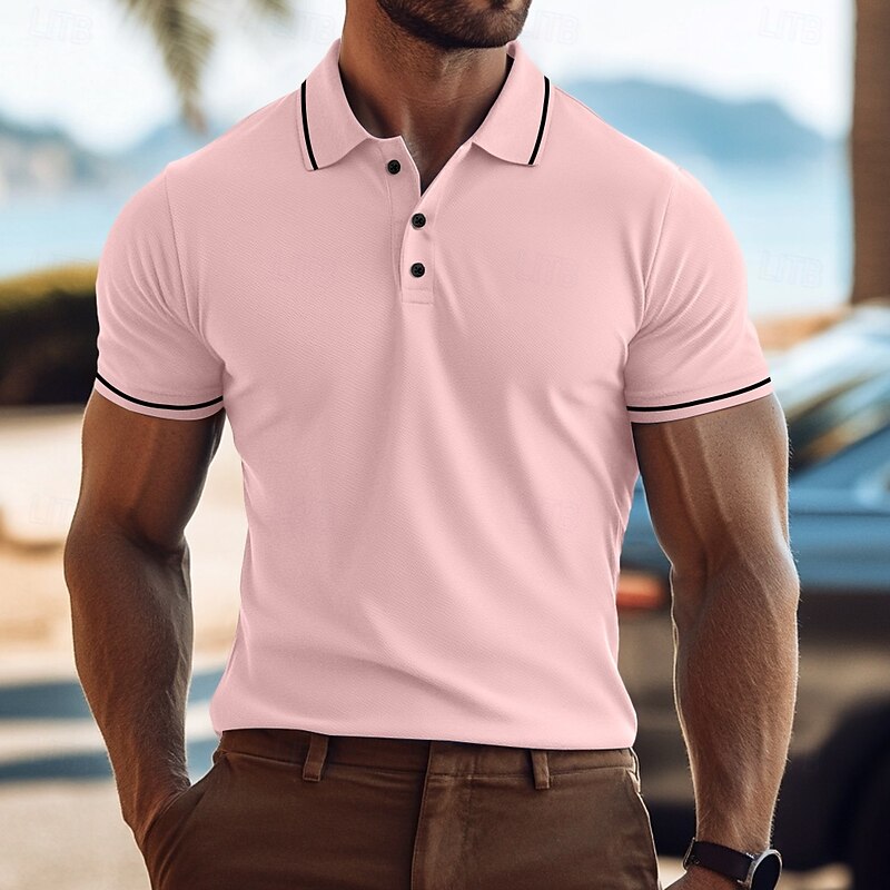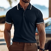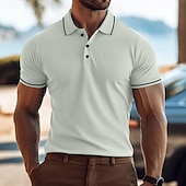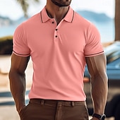 More information about Men's Business Polo Golf Shirt Business Casual Lapel Classic Short Sleeve Color Block Buttons Summer Spring & Fall Light Pink Dark Khaki Black White Light Green Navy Blue Business Polo