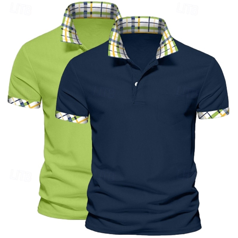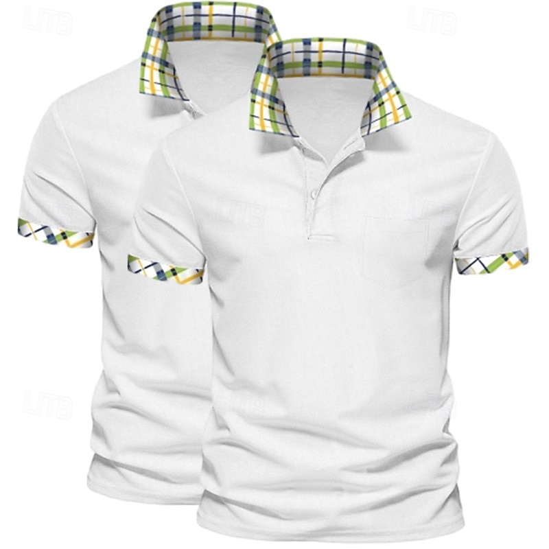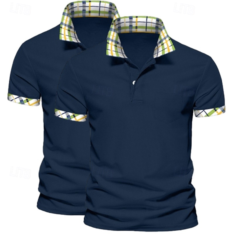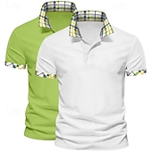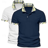 Men's Solid Color Plaid Color Block Polo Shirts Golf Shirt Short Sleeve Lapel Casual Sports & Outdoor Business Casual 2 Piece Buttons Summer Spring Spring &  Fall Dark Blue+White White+Yellow 21