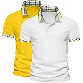 More information about Men's Solid Color Plaid Color Block Polo Shirts Golf Shirt Short Sleeve Lapel Casual Sports & Outdoor Business Casual 2 Piece Buttons Summer Spring Spring & Fall Dark Blue+White White+Yellow