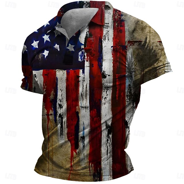 American Independence Day Men's American Flag Veterans Polo Shirts Golf Shirt Short Sleeve Polo Shirts Collared Shirts Casual Streetwear Vacation Wear Party Outfits Buttons 3D Print Spring & Summer