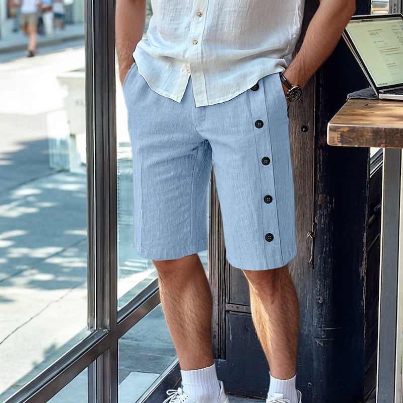 $20.99 - Men's Linen Shorts Summer Shorts Bermuda shorts Buttons Pocket Straight Leg Plain Comfort Breathable Short Business Designer Stylish White Army Green 2025. Shop for cheap Business online? Buy at lightinthebox.com on sale today!